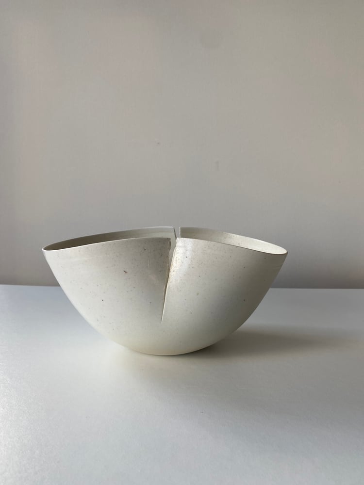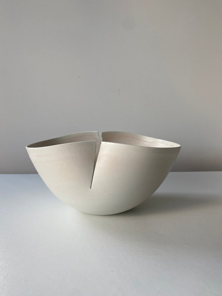 Gentle blush markings from the real flame kiln, splits to either side of the body & the rim