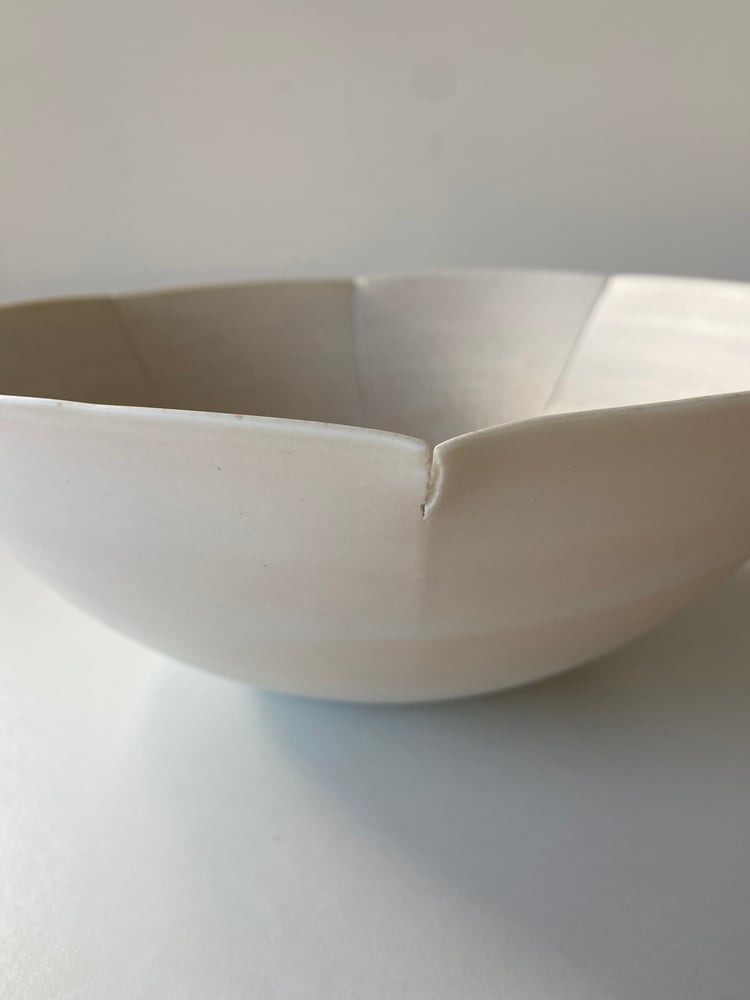Hand thrown and altered porcelain vessel. Wood fired in my kiln on the Isle of Wight.